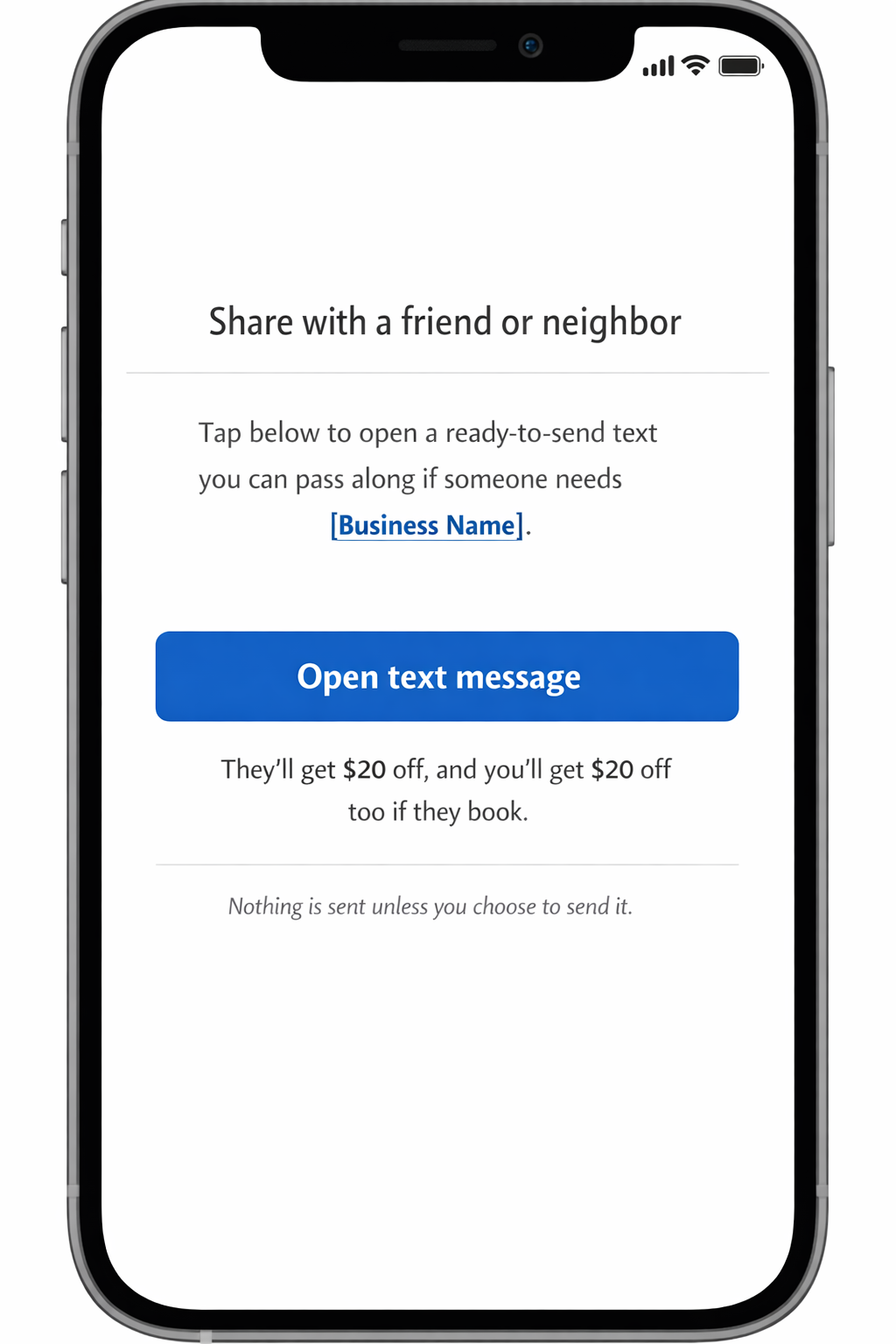 Their friend taps the link and lands on a simple page to request your services.